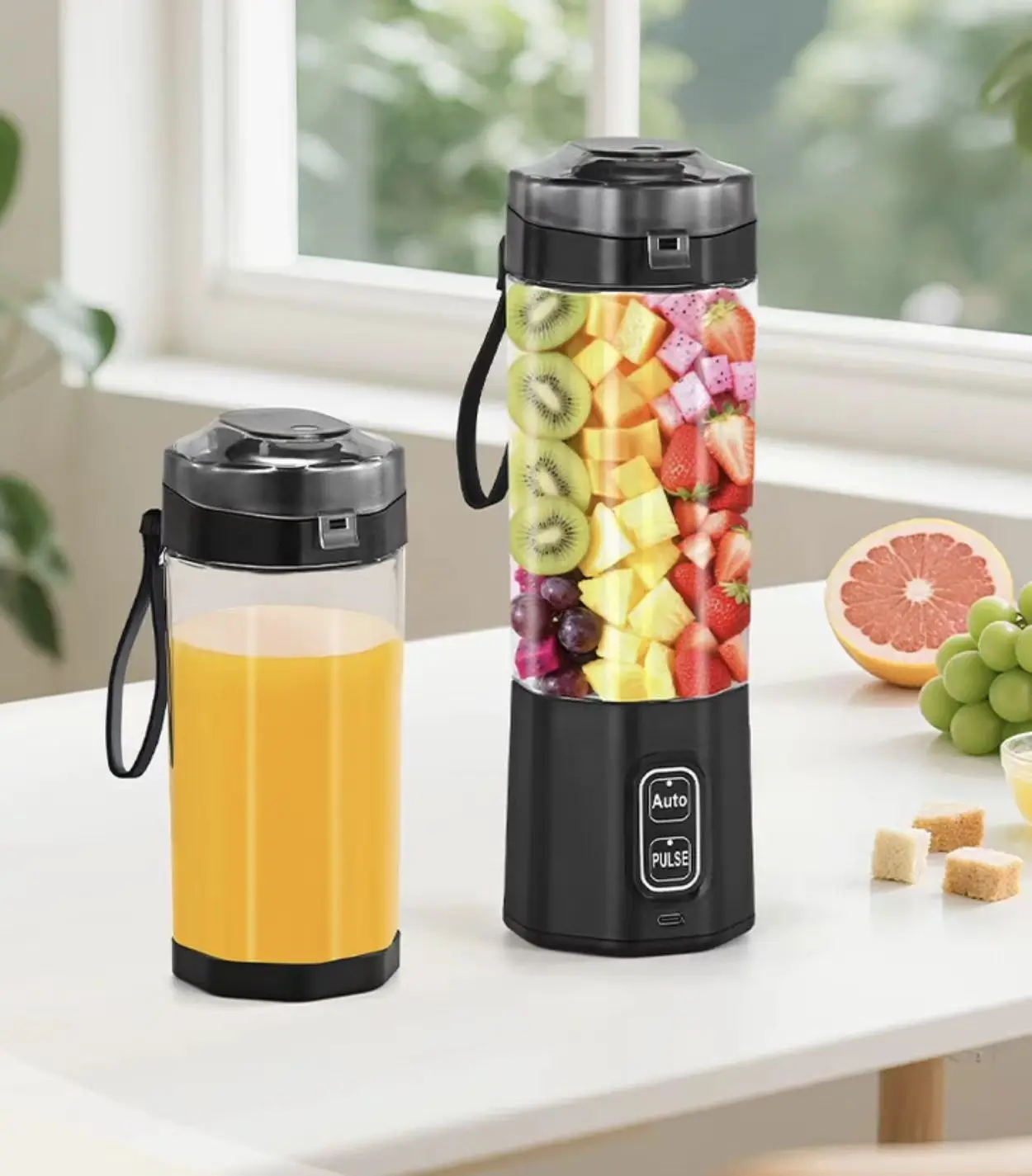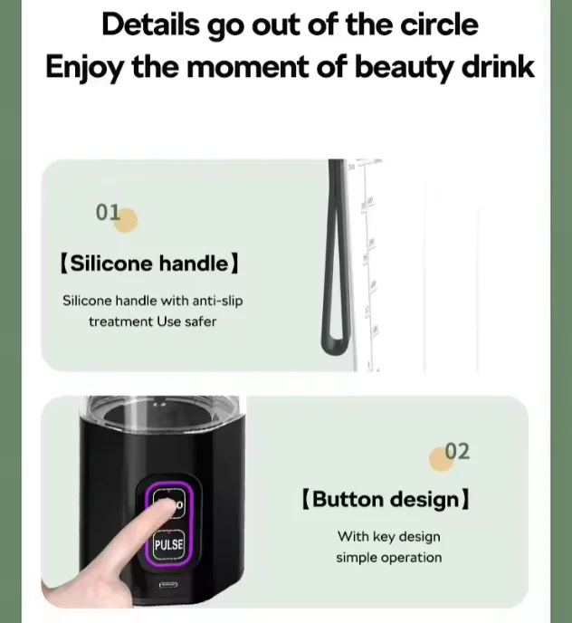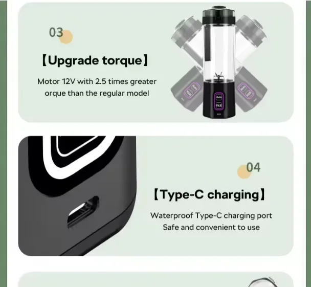 24 Oz 6000mah Shakes Automatic + New Pulse Function Type Juice Cup Rechargeable Portable Blender