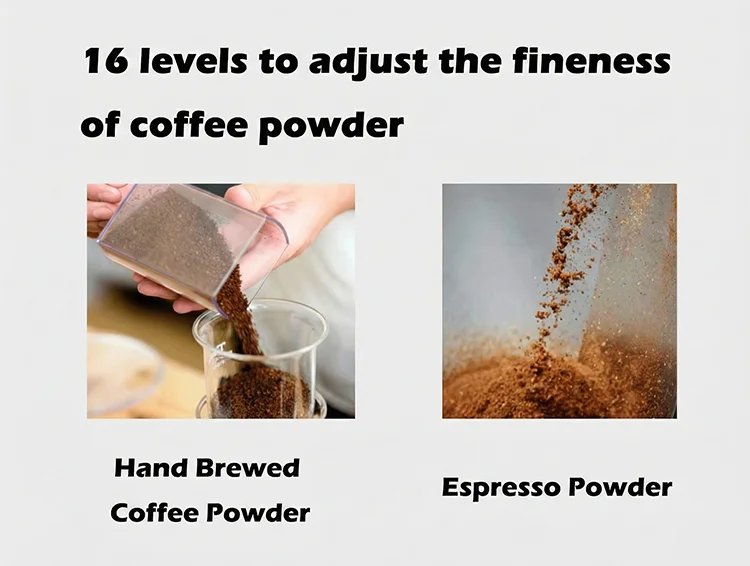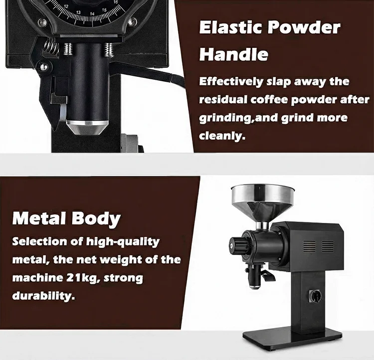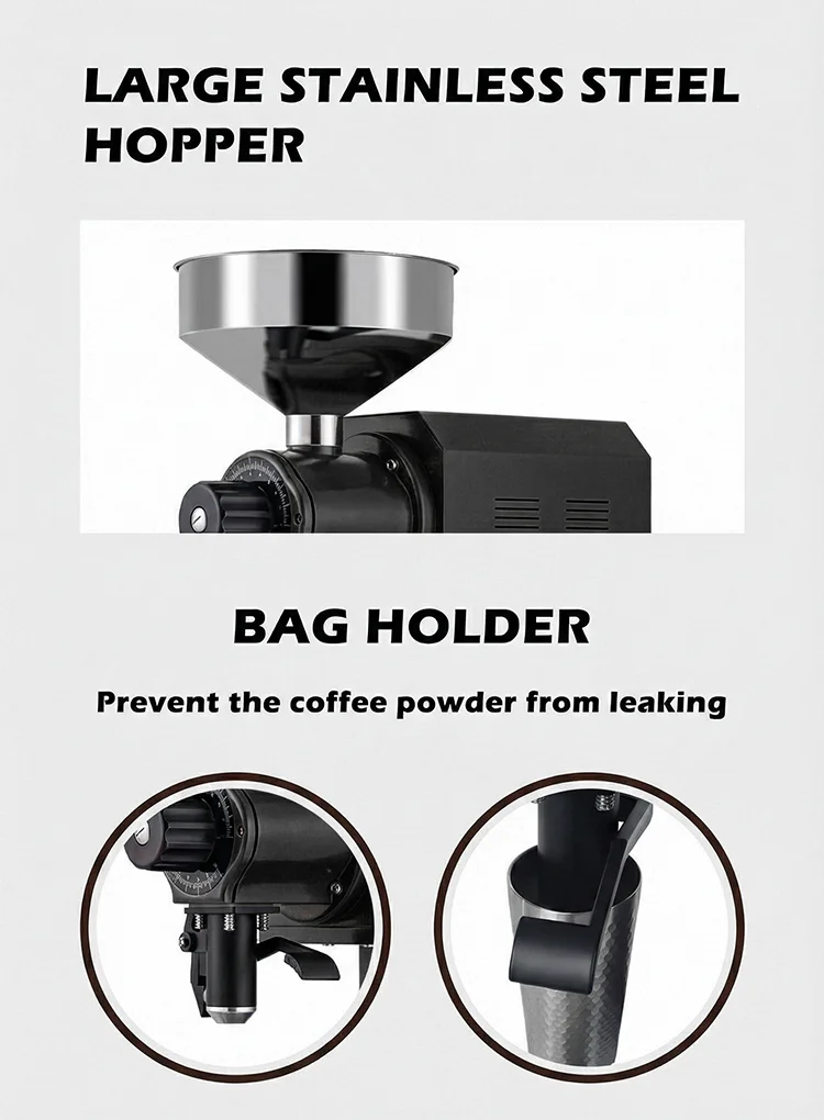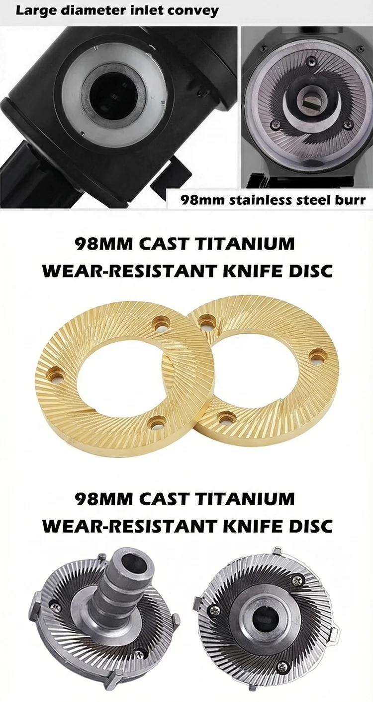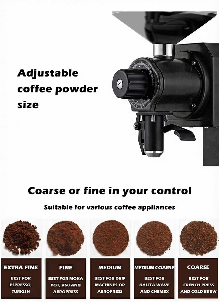 • Equipped with high-performance flat wheel burrs, ensuring stable and consistent grinding, ideal for batch processing in commercial settings.