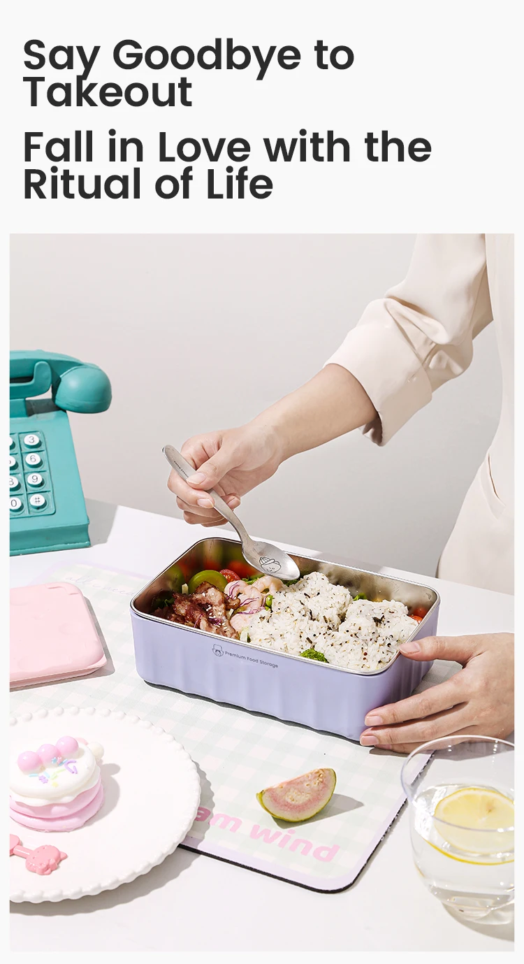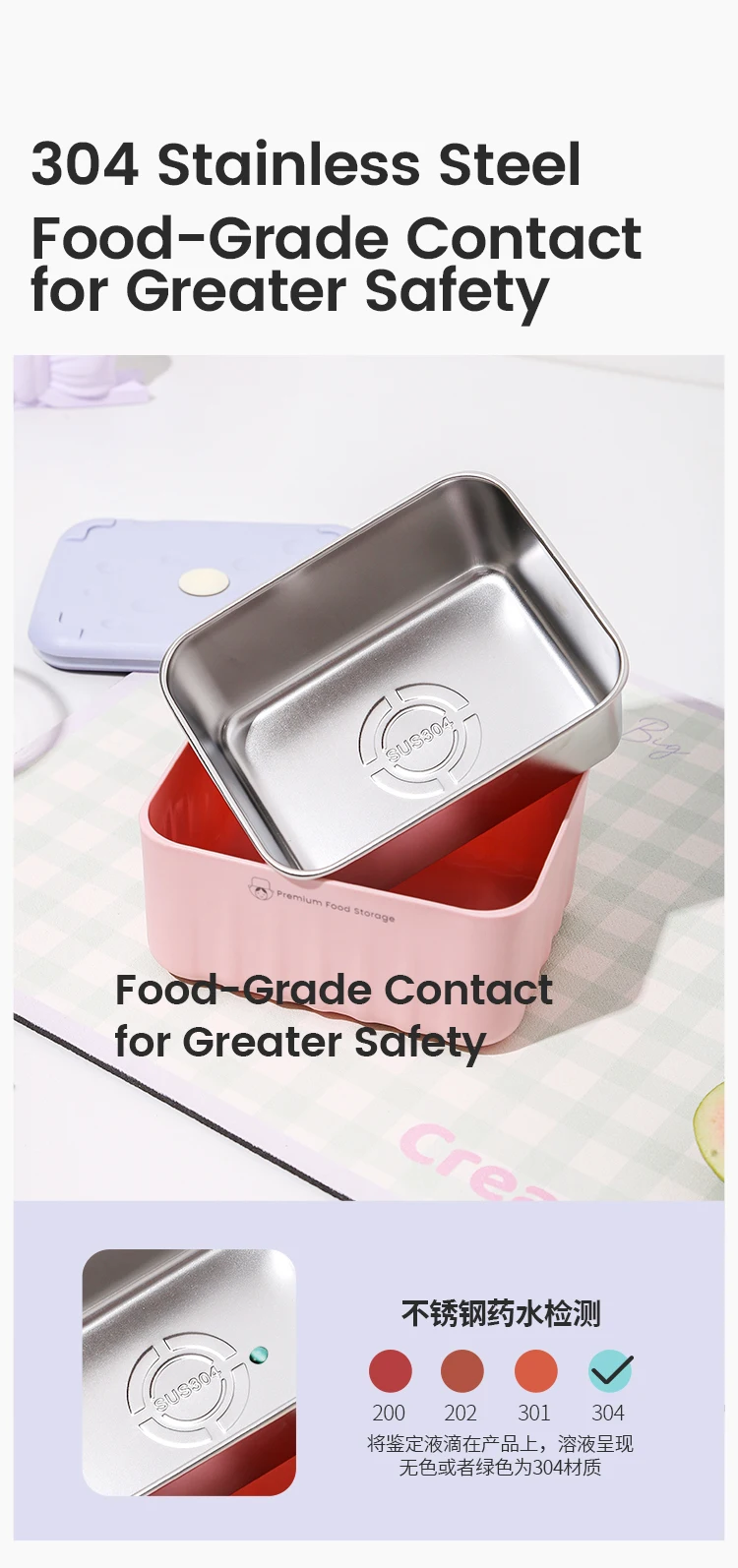 • Made of food-grade 304 stainless steel, this cute bento box is safe, durable and heatable for daily meal storage.