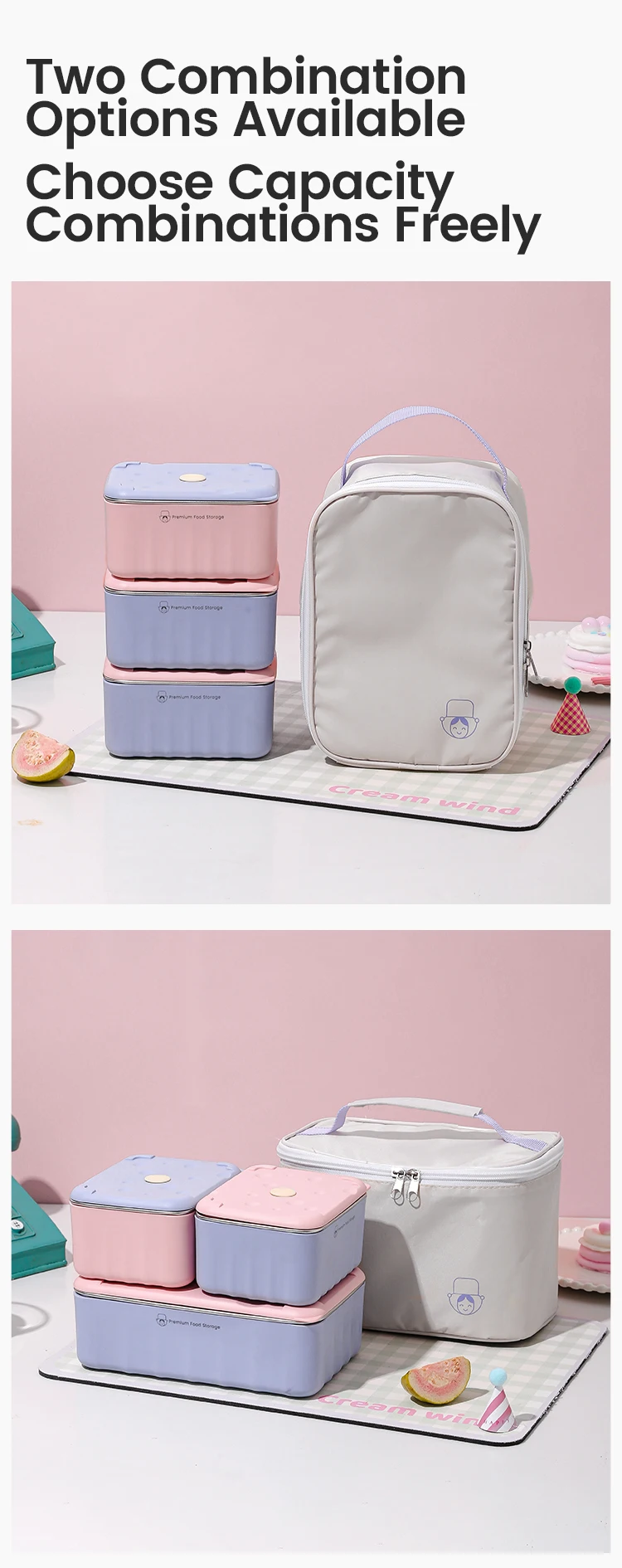 Home / Products / Tableware & Dinnerware / Custom Color Cheese 2 Size Microwave Heatable No Leak Stripe Thermal Bag Stainless Steel Adult Food Storage Bento Lunch Box Set