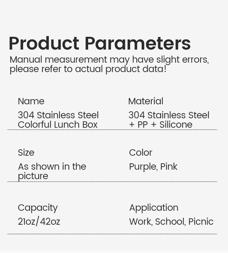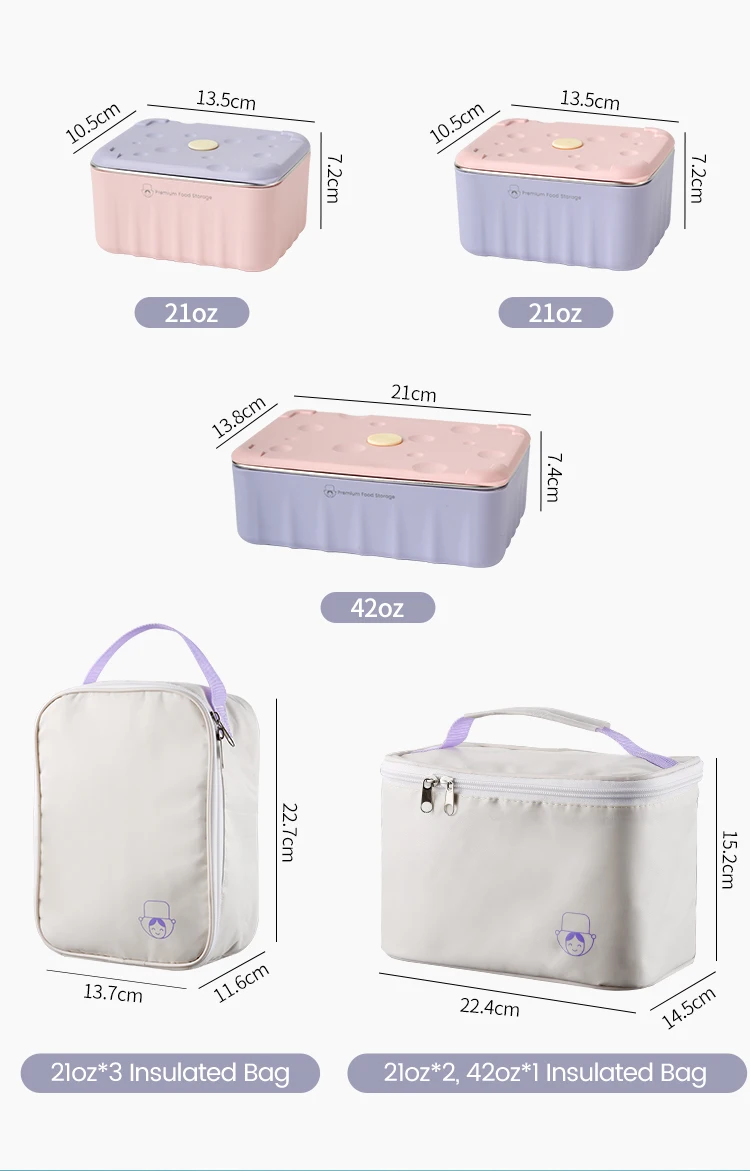 • Comes with a matching thermal bag in pink and purple colors, easy to carry for outdoor and office use.