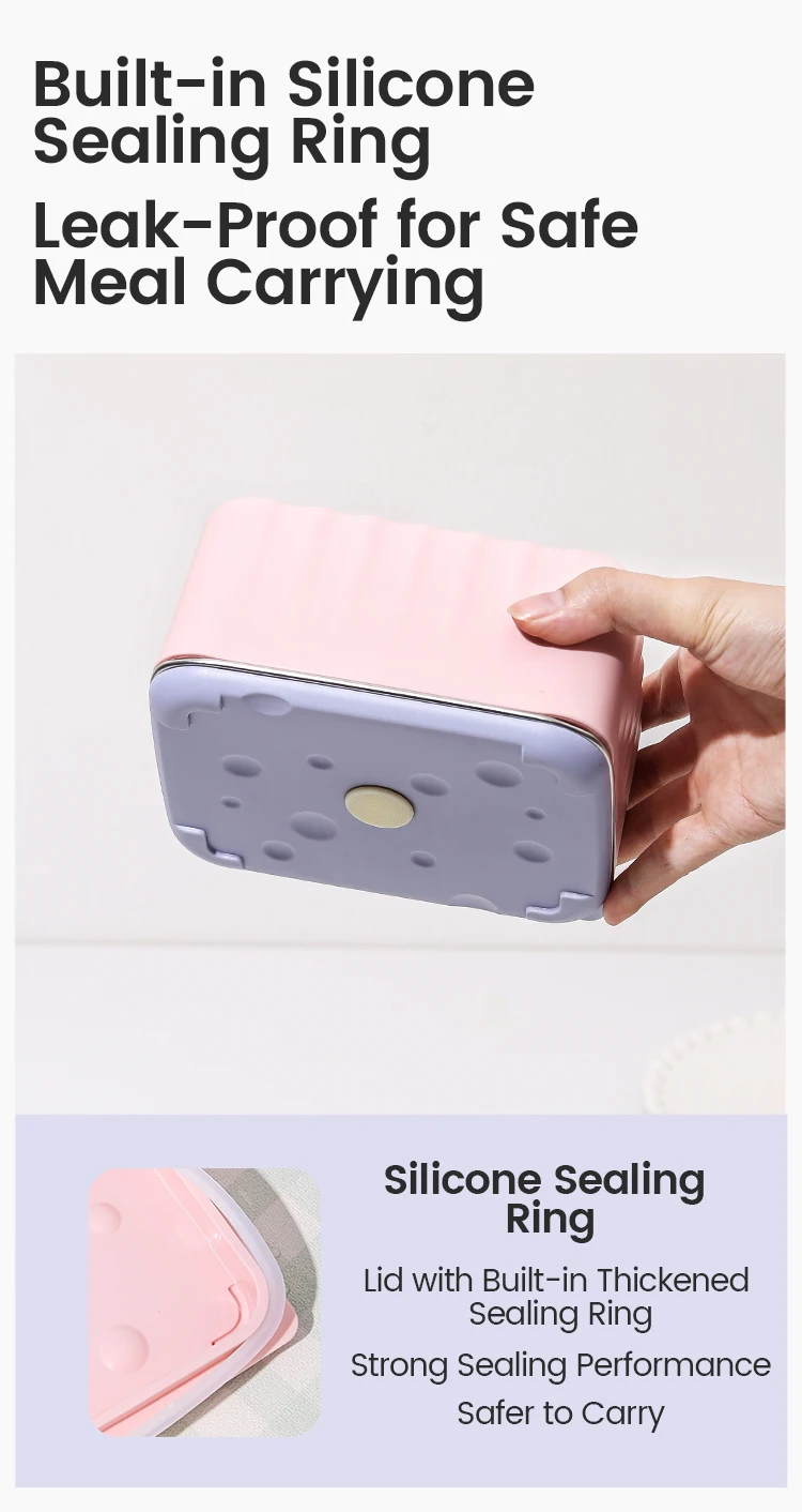 • Single-grid rectangular design with a sealed plastic lid, featuring leak-proof and portable performance.
