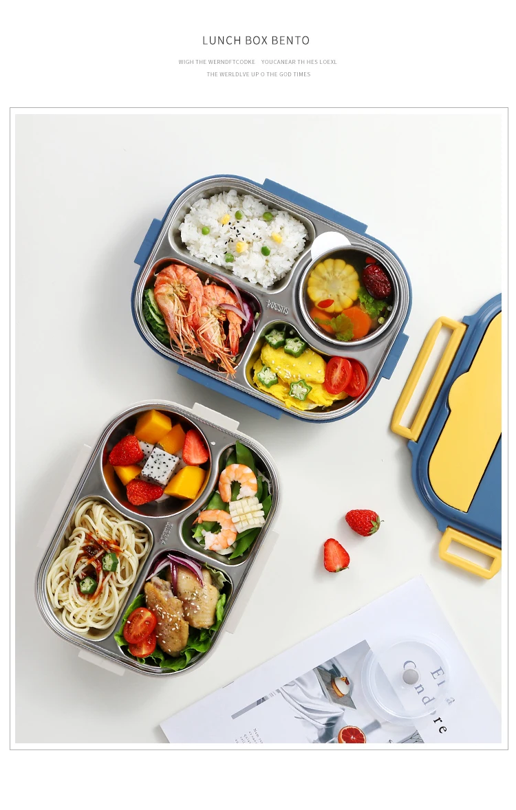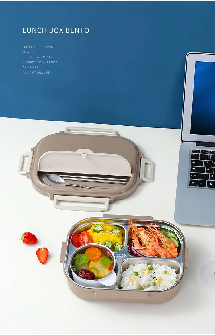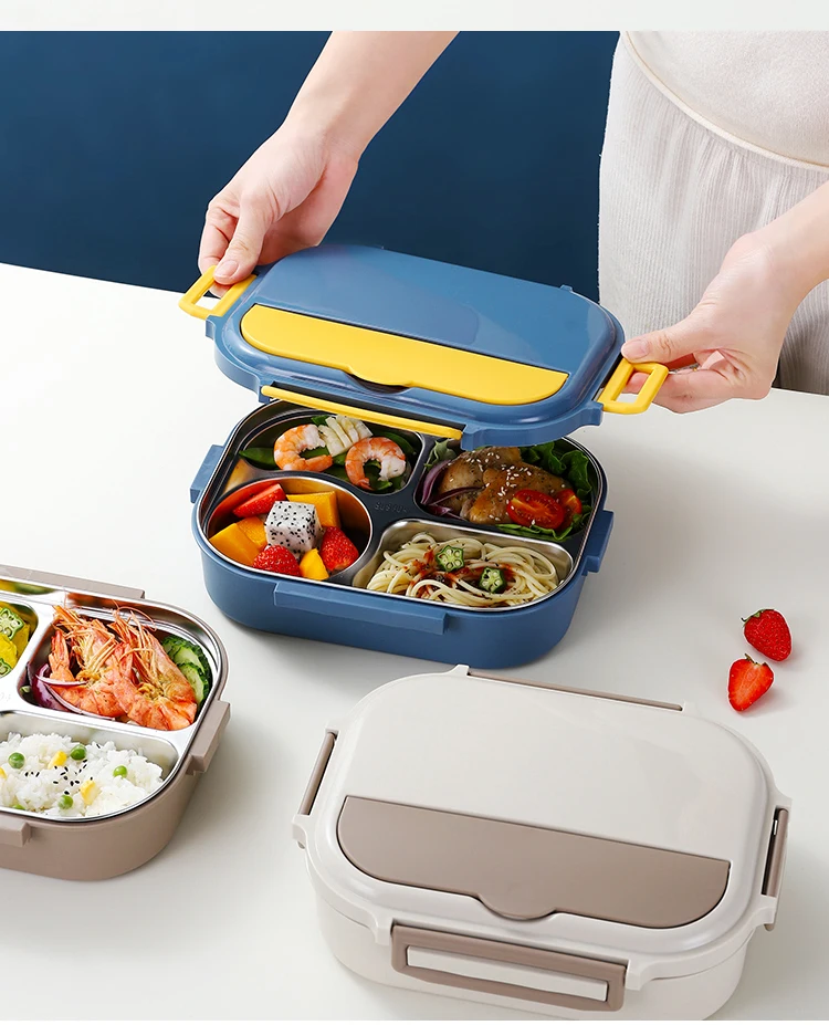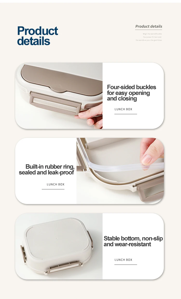 1.This Korean-style bento box adopts food-grade PP and stainless steel material, safe, reusable and easy to clean. 2.With over 3 compartments and a 4-grid design, it separates meals scientifically for balanced diet.