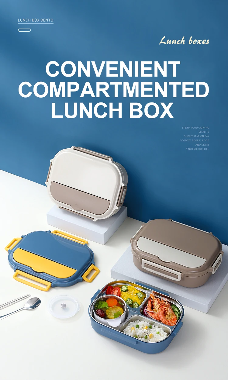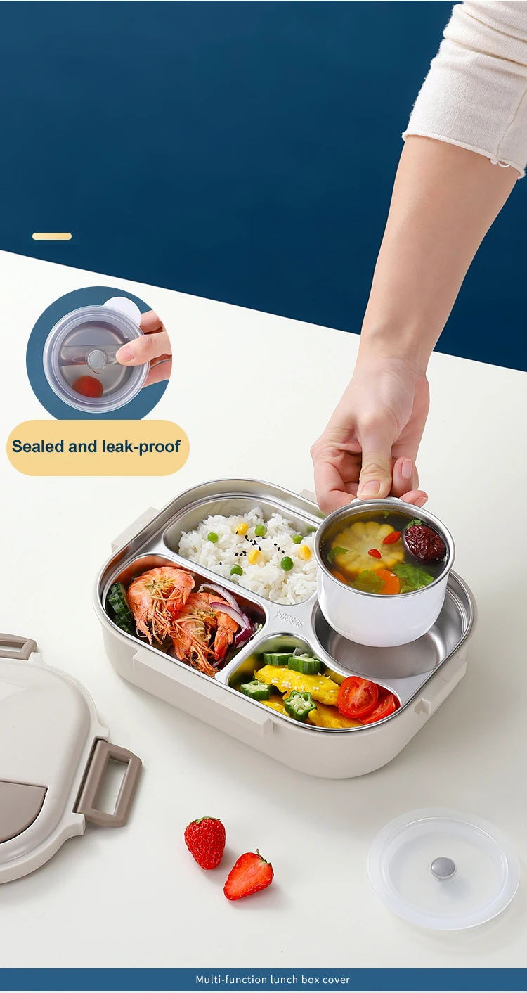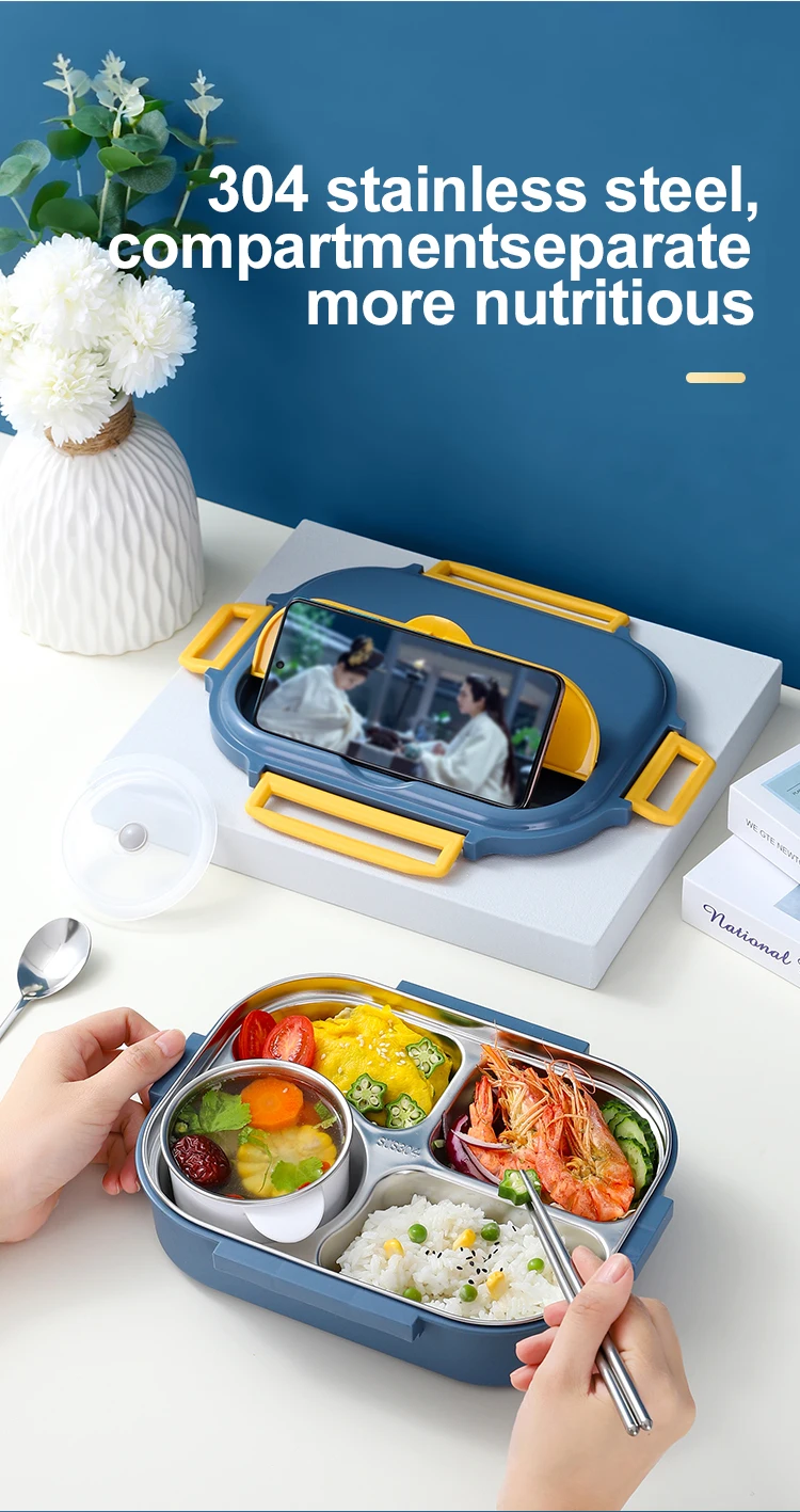 1.This Korean-style bento box adopts food-grade PP and stainless steel material, safe, reusable and easy to clean. 2.With over 3 compartments and a 4-grid design, it separates meals scientifically for balanced diet.