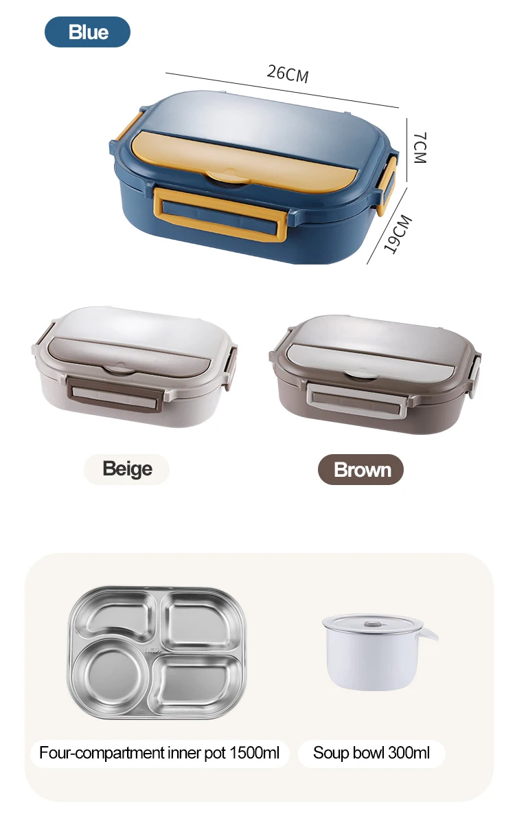 3.It is heatable, portable and leak-proof, with a total capacity of 1500ml plus a 300ml soup bowl.