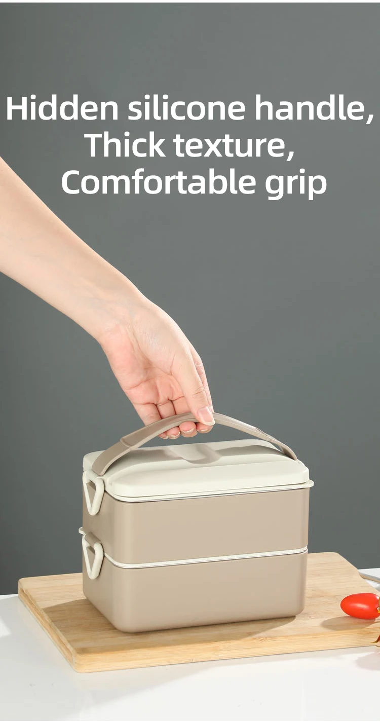 Double Layer 2 Compartments 1600ml Soft Silicon Handle No Leak Seal Buckle Insulated Heat Hot Bento Lunch Box