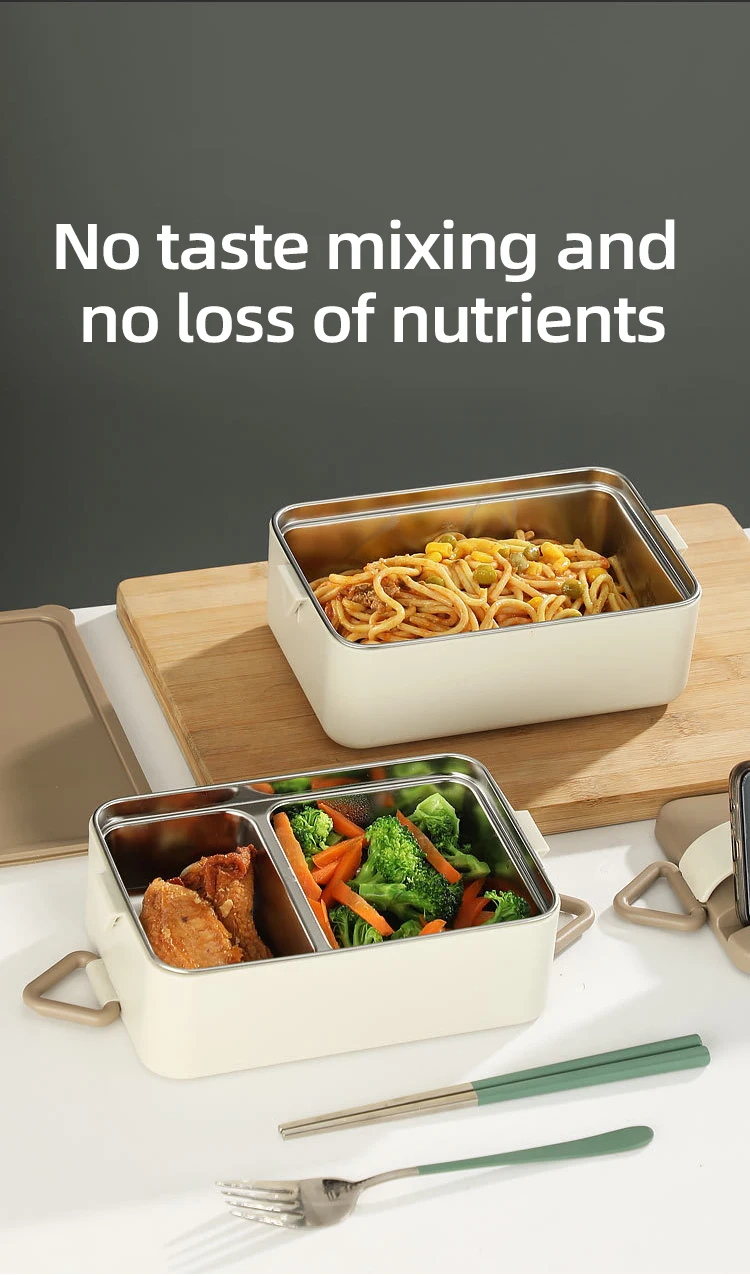 • Two-compartment separated design keeps meals from mixing flavors, practical for daily packed meals.