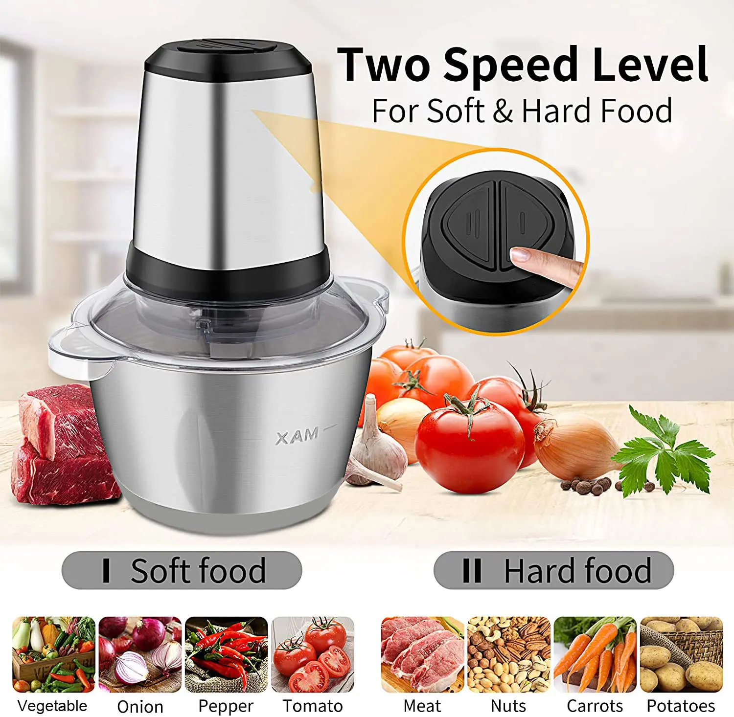 • Multi-functional vegetable and meat chopper, ideal for daily kitchen use