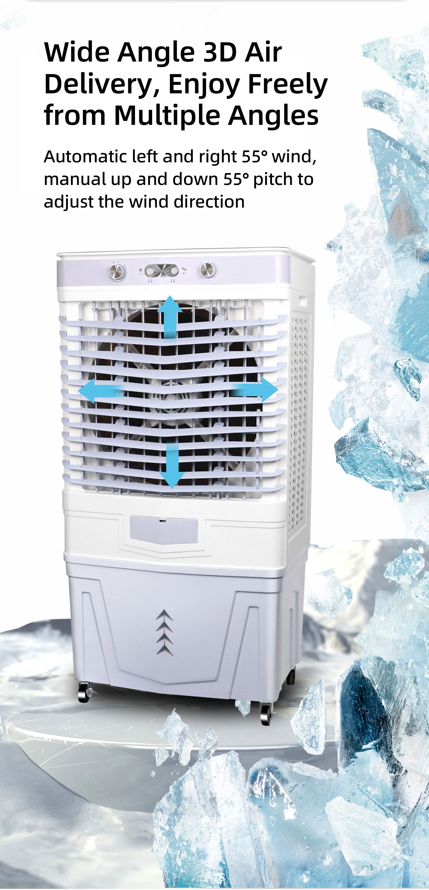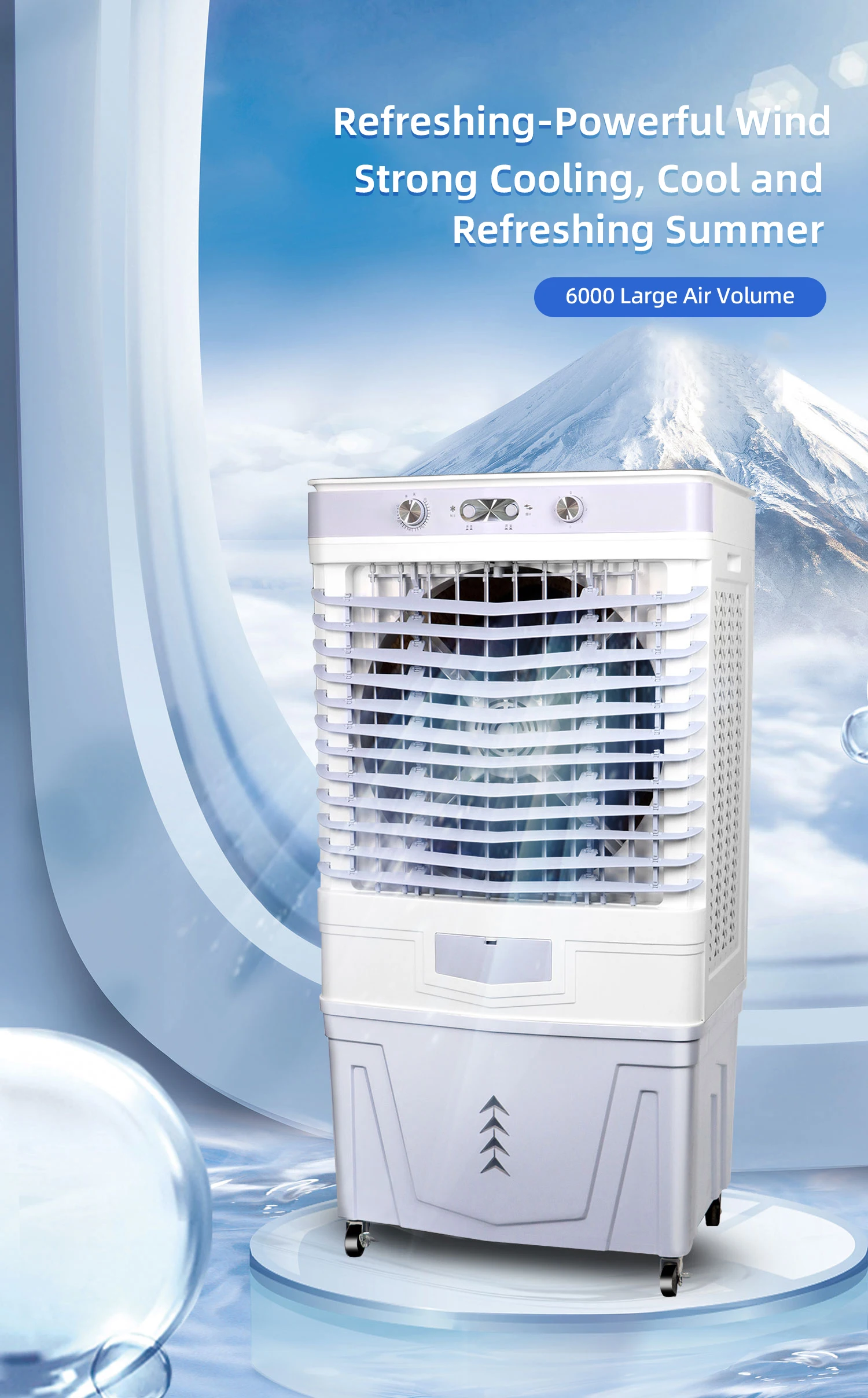Home / Products / Electric Fans / Industrial Cooling Fan Fast Cooling Outdoor Household Hotel Use Three-Sided Air Intake Output Large-Capacity Water Tank