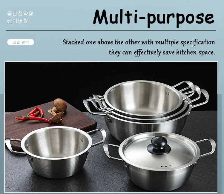Korean Style Stainless Steel Family Milk Ramen Instant Noodle Small Boiling Soup Hot Pot for Induction Cooker Cooking