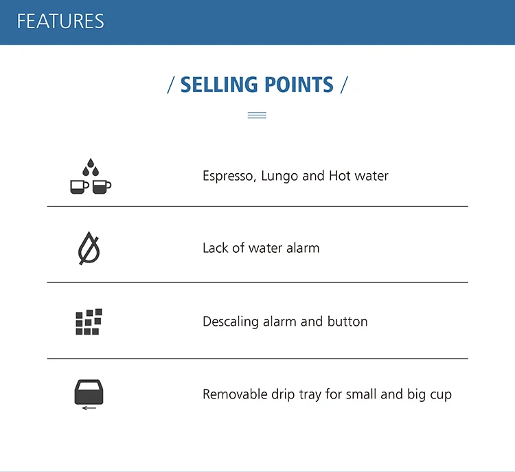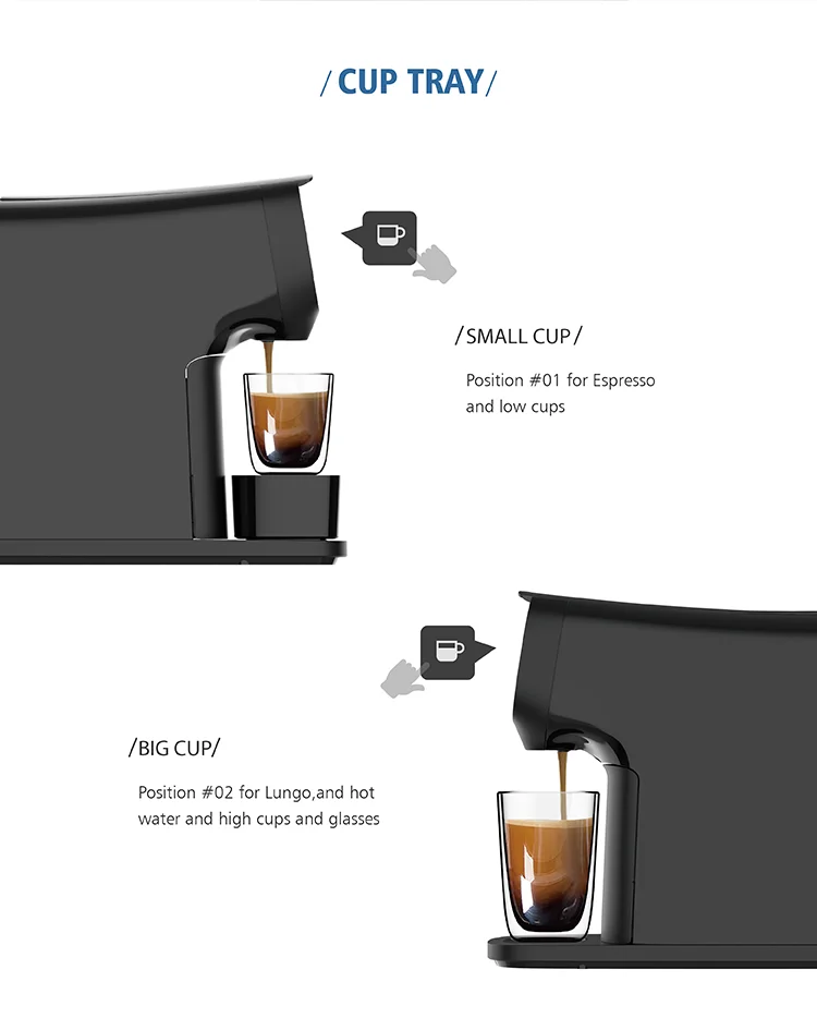 • This electric capsule coffee maker with 220-240V voltage and 1200W power suits both hotel and household scenarios.