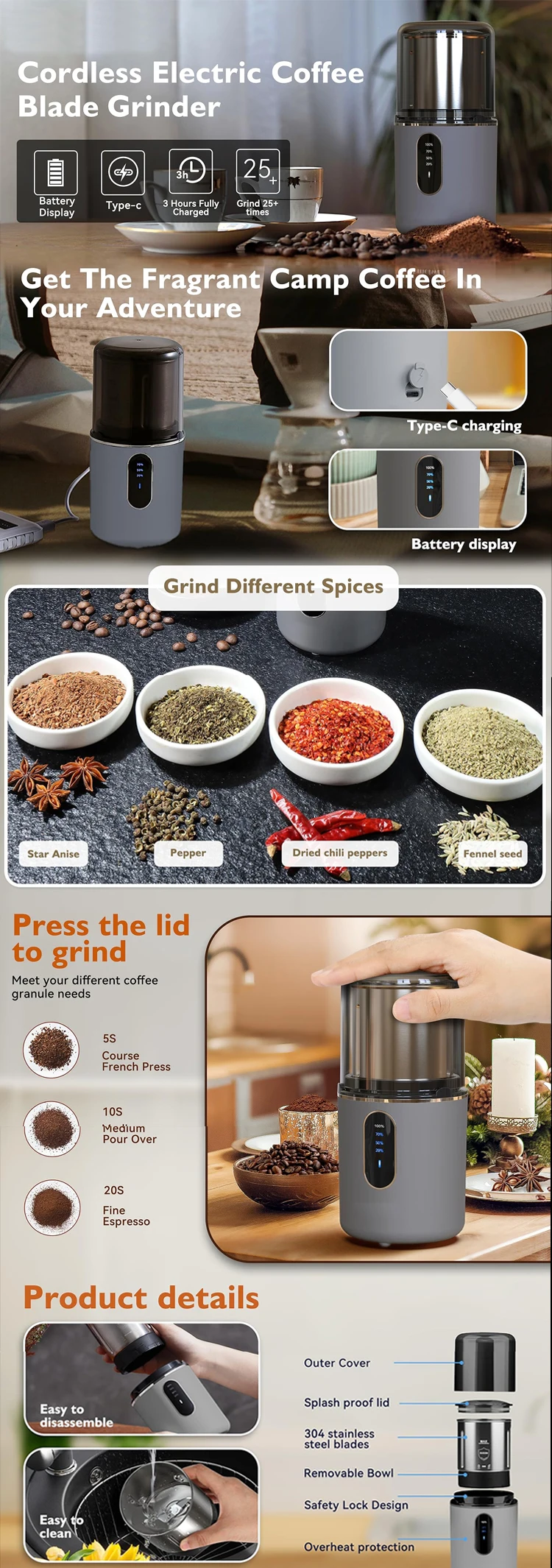 | New Mini Portable OEM ODM Coffee Grinder Usb Rechargeable Electric Coffee Grinder Cordless Blender Grinder for Coffee Beans | |