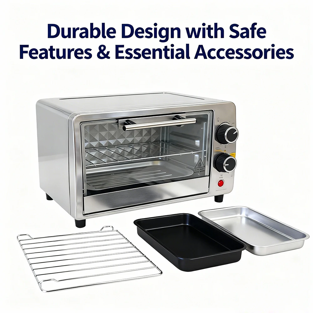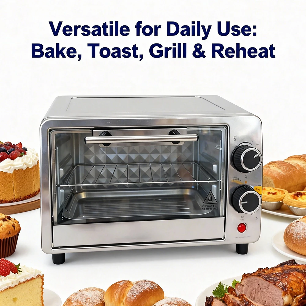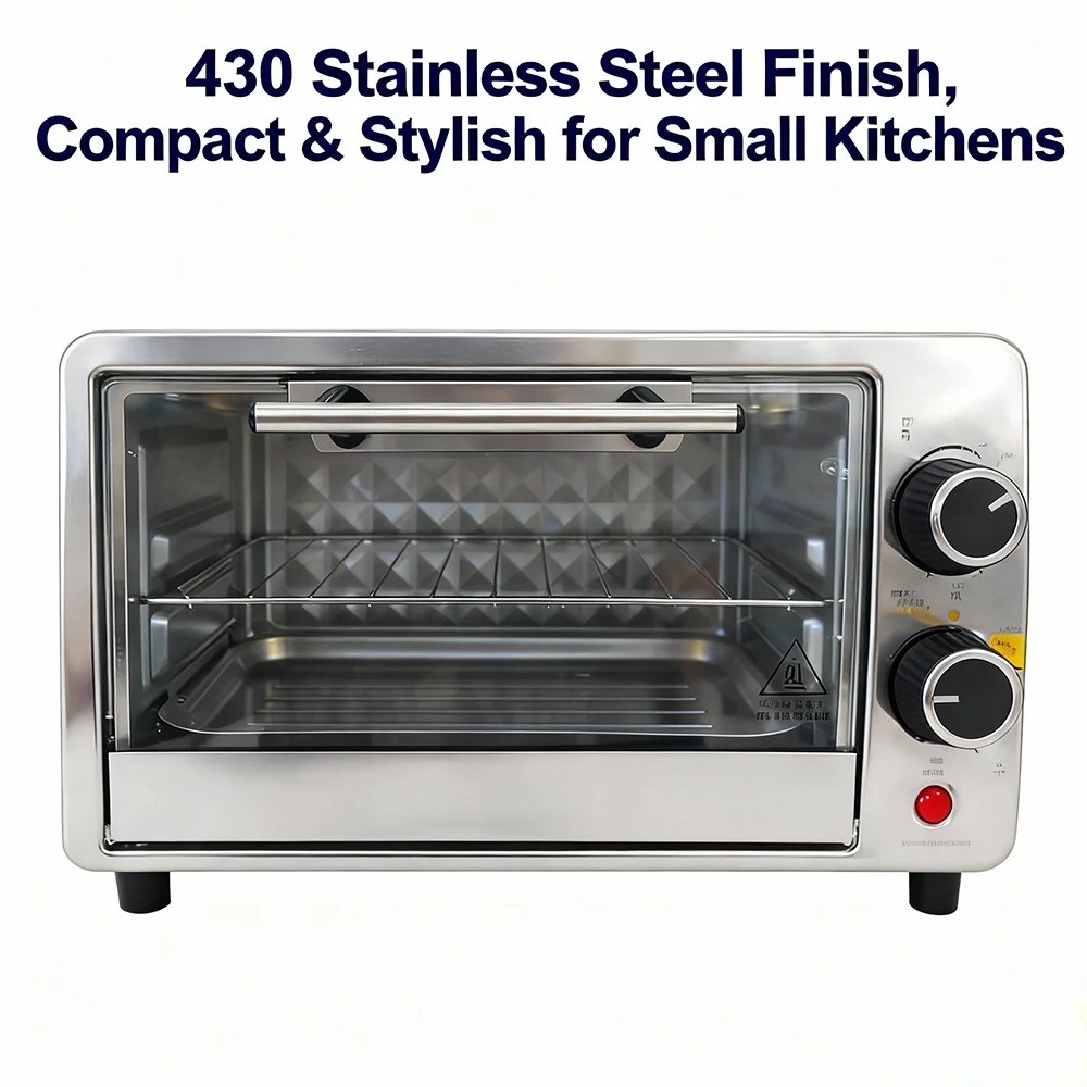 Crafted with premium 430-grade stainless steel, this 9L mini oven boasts a sleek, durable exterior that resists scratches and corrosion. Its compact size fits perfectly on countertops, RVs, or dorm desks, while the minimalist design with a simple door handle adds a touch of modern elegance to any space—no more sacrificing style for functionality.