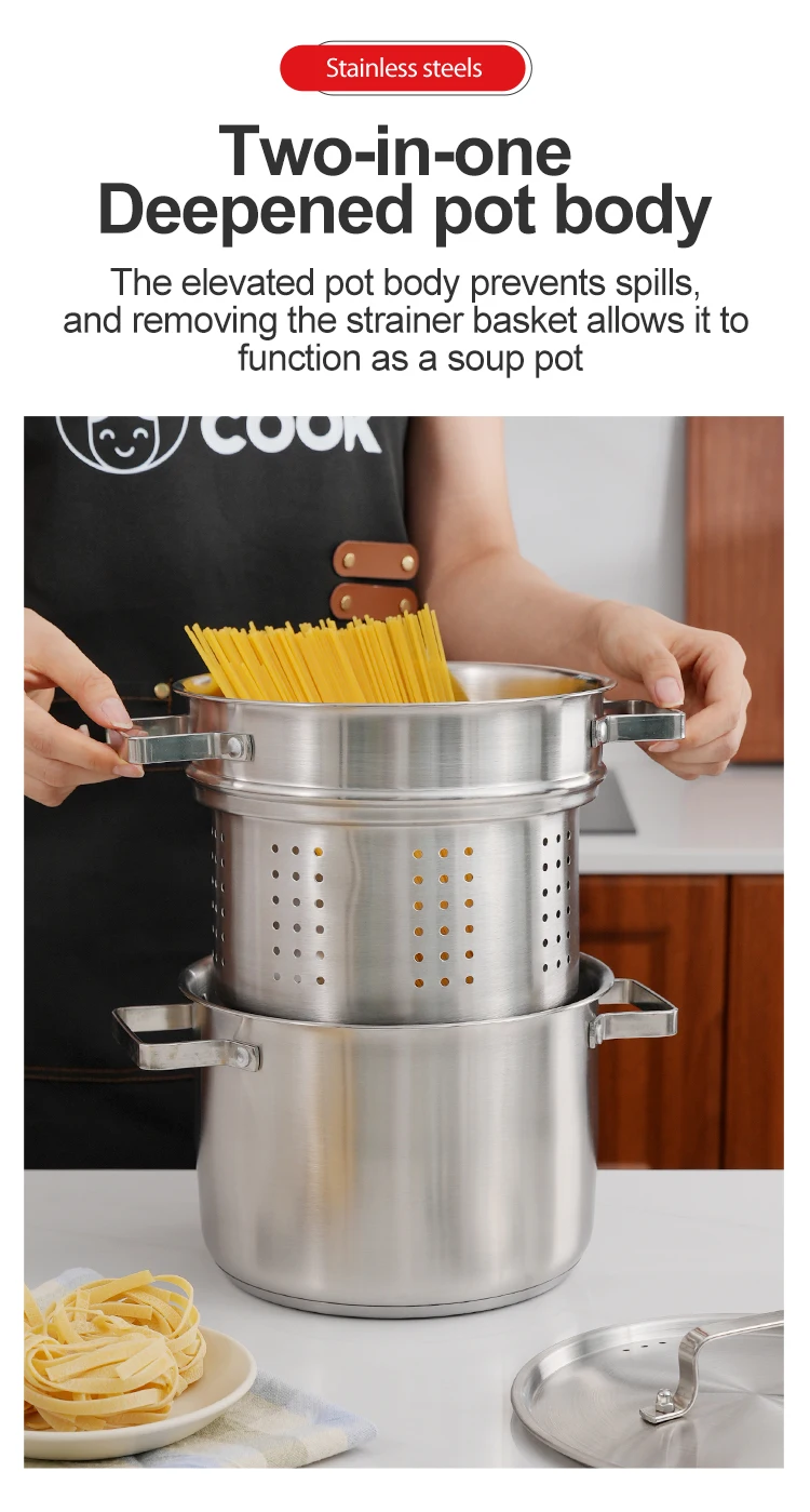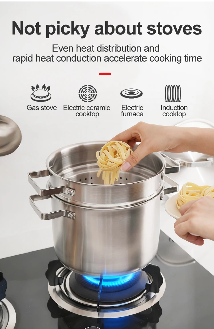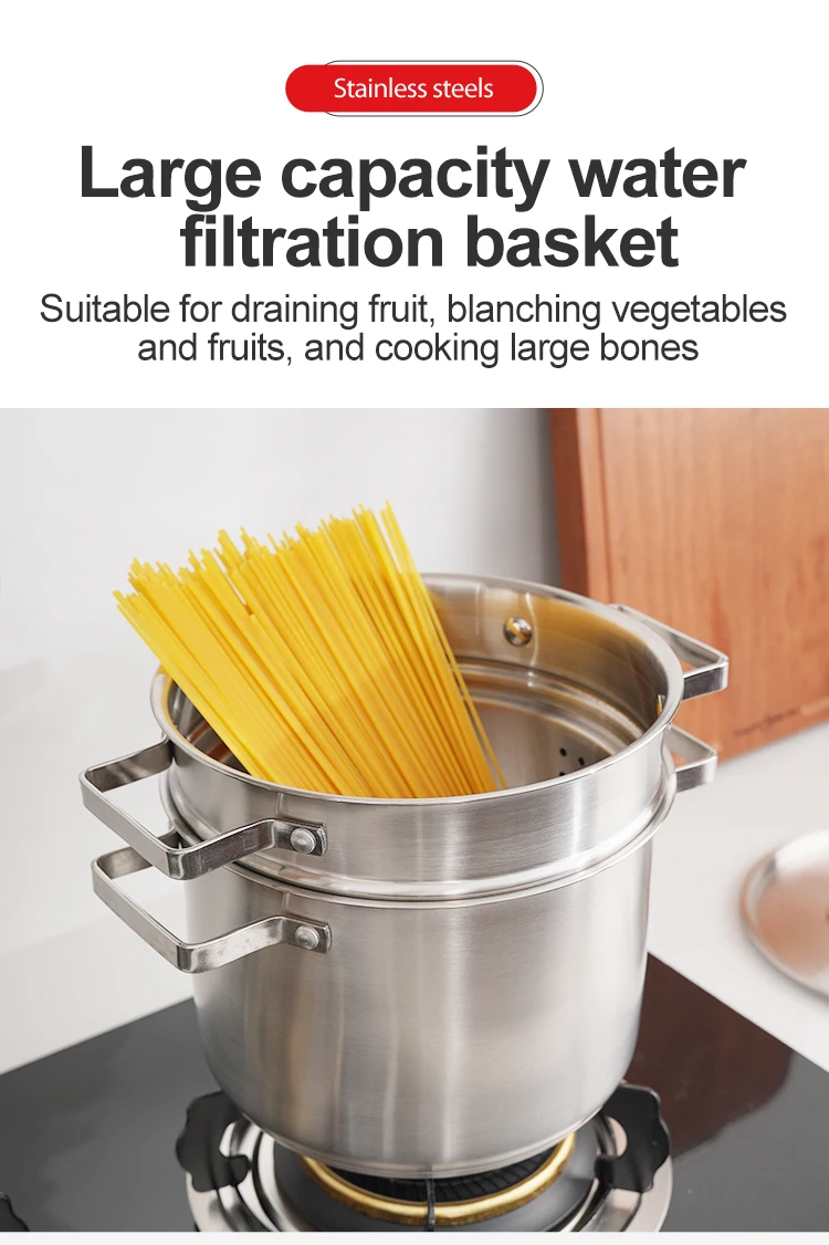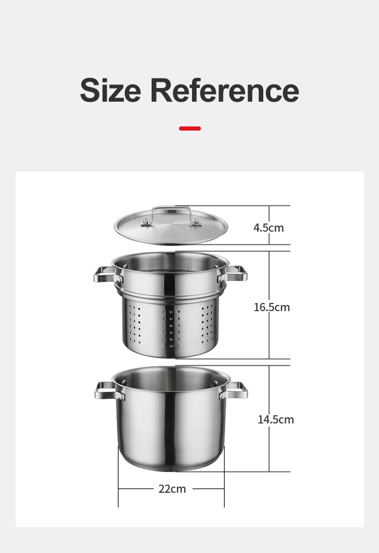 • Compatible with gas and induction cookers, this 22cm 201 stainless steel pot has no inner coating for healthy cooking.
