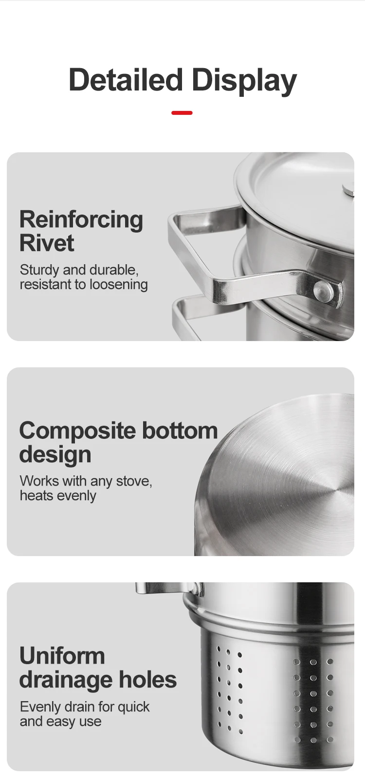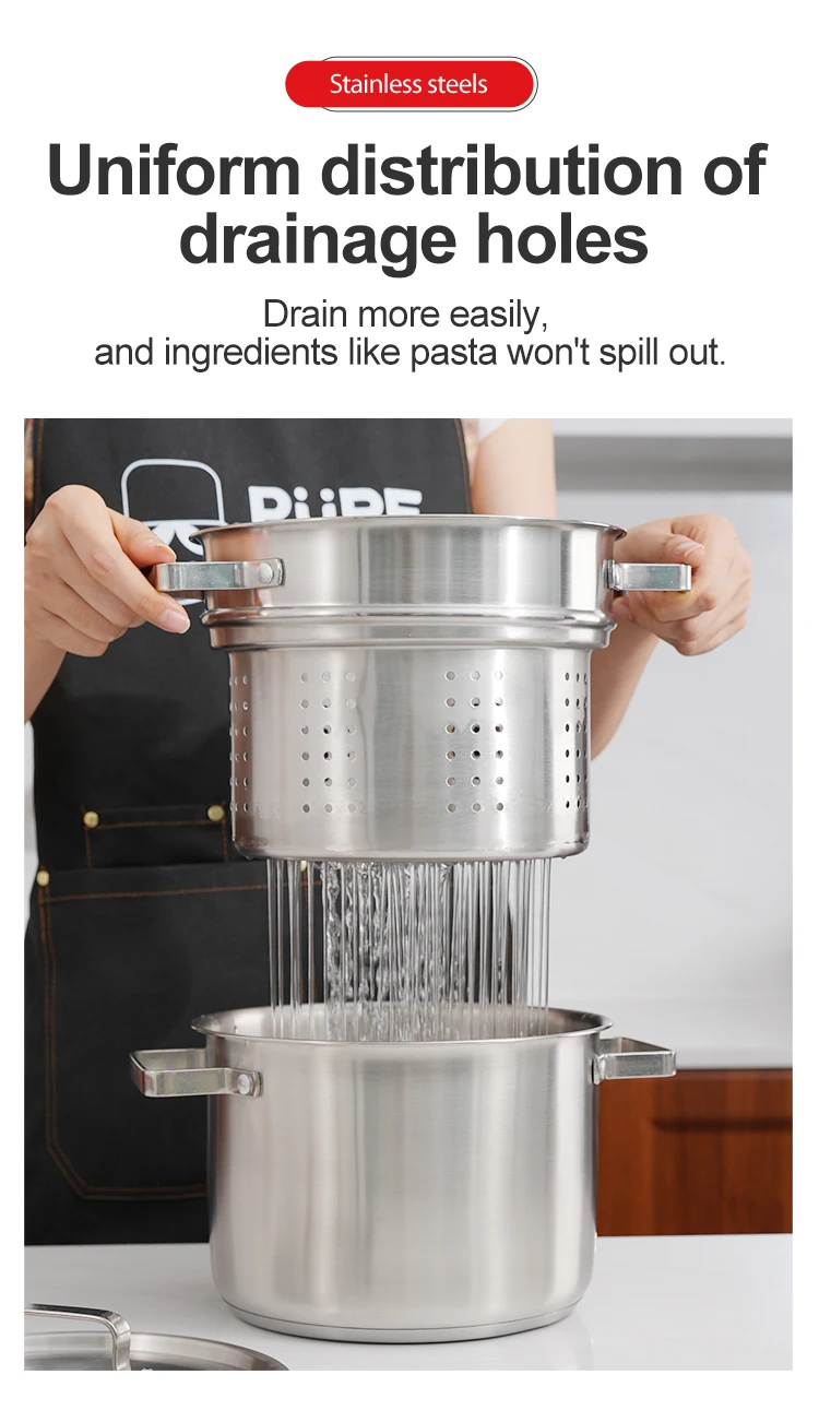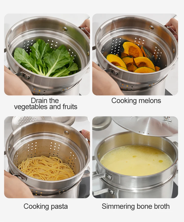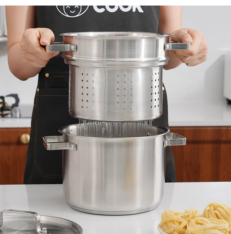 • Compatible with gas and induction cookers, this 22cm 201 stainless steel pot has no inner coating for healthy cooking.